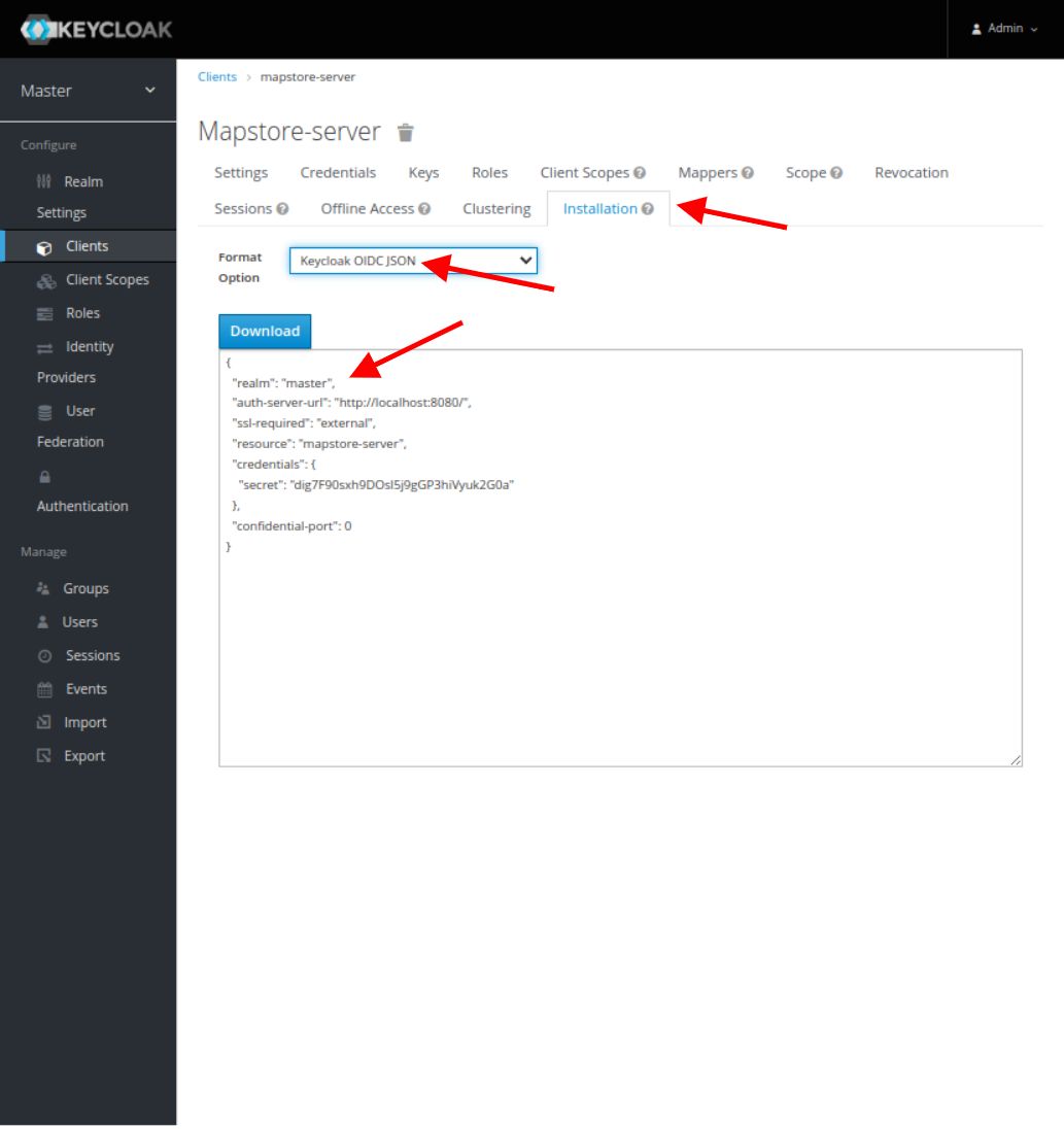 to: https://<your-domain>/mapstore/rest/geostore/openid/oidc/callback - Create and copy the client secret