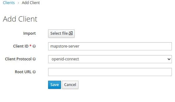 Create a new Client on keycloak. In this guide we will name it mapstore-server (because if you need to configure SSO, we may need another key to call mapstore-client)