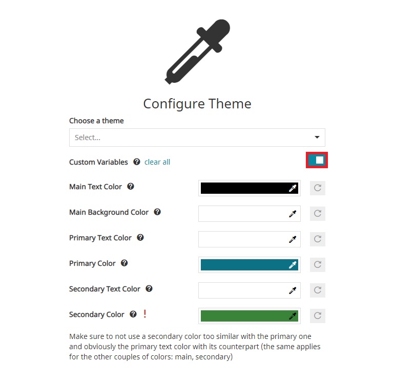 After selecting a theme from the drop-down, it is also possible to customize it from UI by enabling Custom Variables.