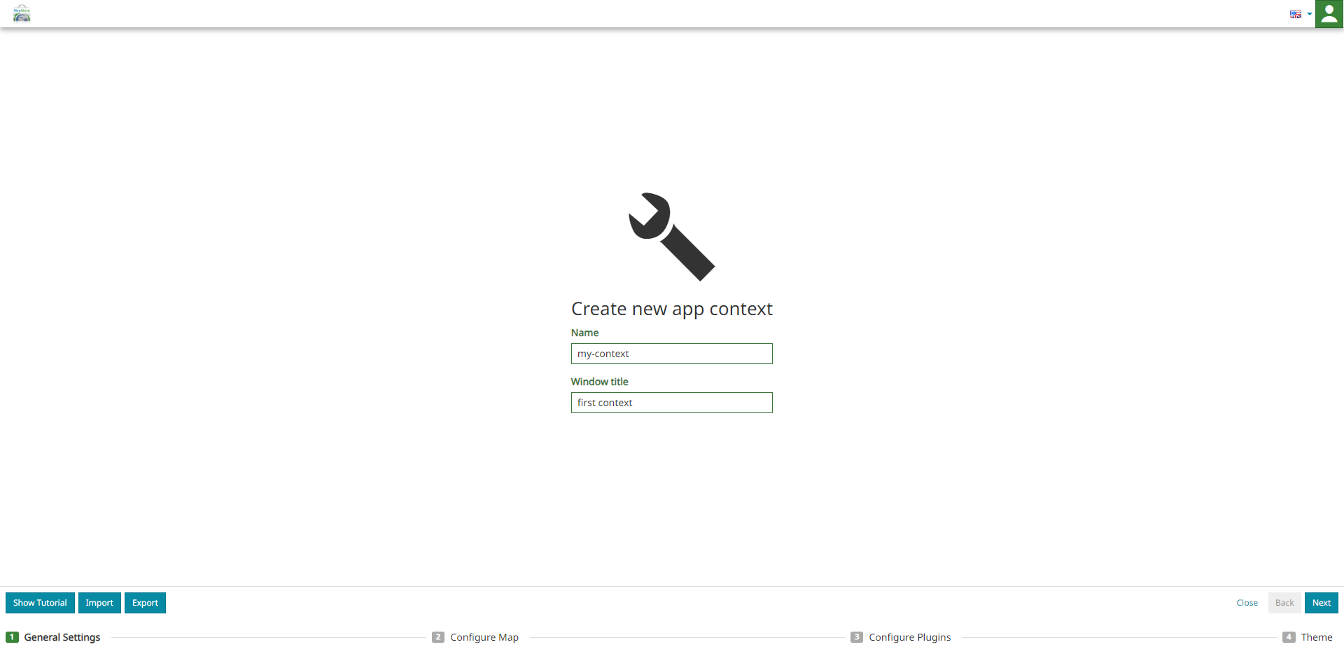To create the context viewer, the map configuration like the one described here opens so that the user can set the initial state of the context map.