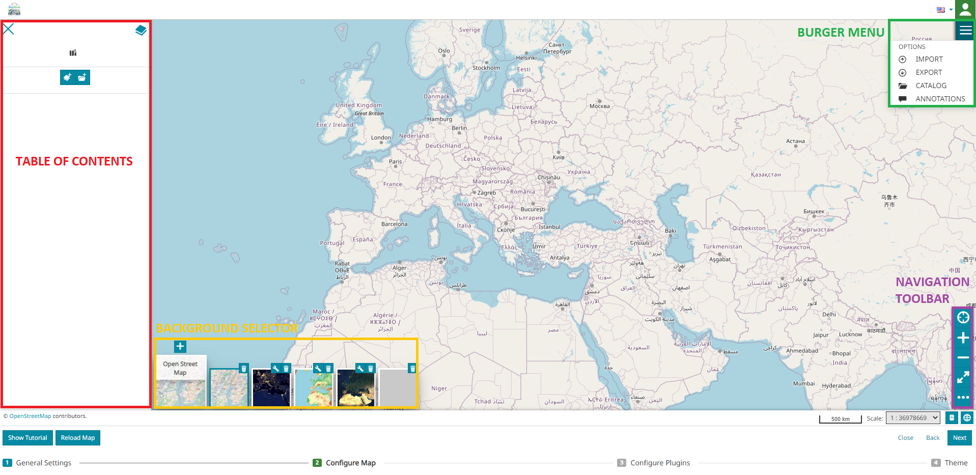 Background Selector, at the bottom left of the viewer, allows the user to add, manage and remove map backgrounds