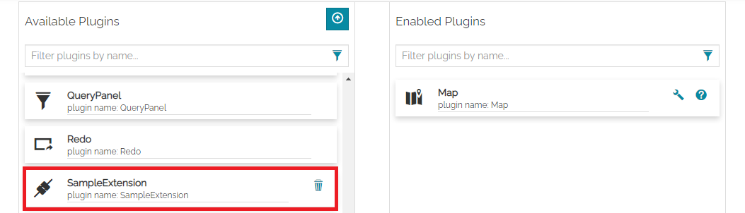 The MapStore administrator can also install a custom plugin by using the Add extension to MapStore button
