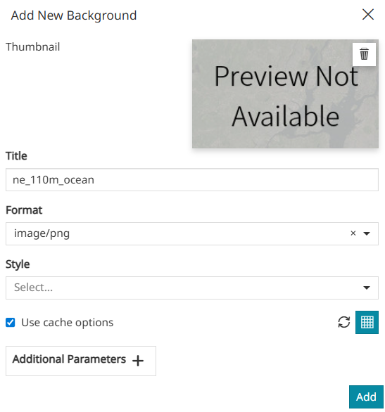As soon as a WMS layer is selected, the Add New Background window opens: