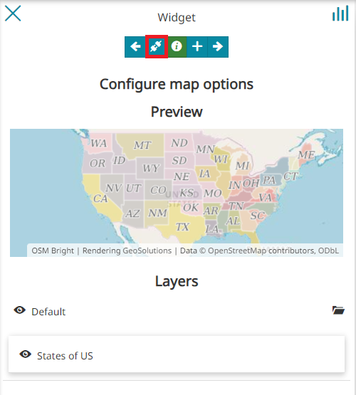 As soon as more than one Map widget is added to the dashboard, the connect/disconnect button appears inside the Configure map options panel (accessible by adding a new Map widget or editing an existing one).