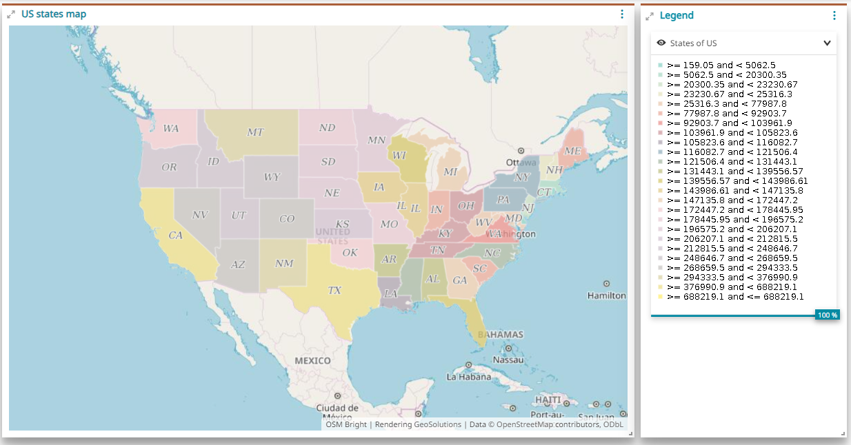 Also in this case the connecting procedure is similar to those seen previously, but now the information contained in the Legend widget doesn't change according with the map extension. An example can be the following: