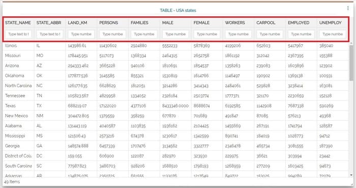 When a table is connected with other widgets, it became a Parent Table and a filter appears on the top.