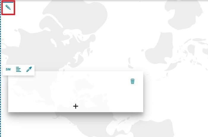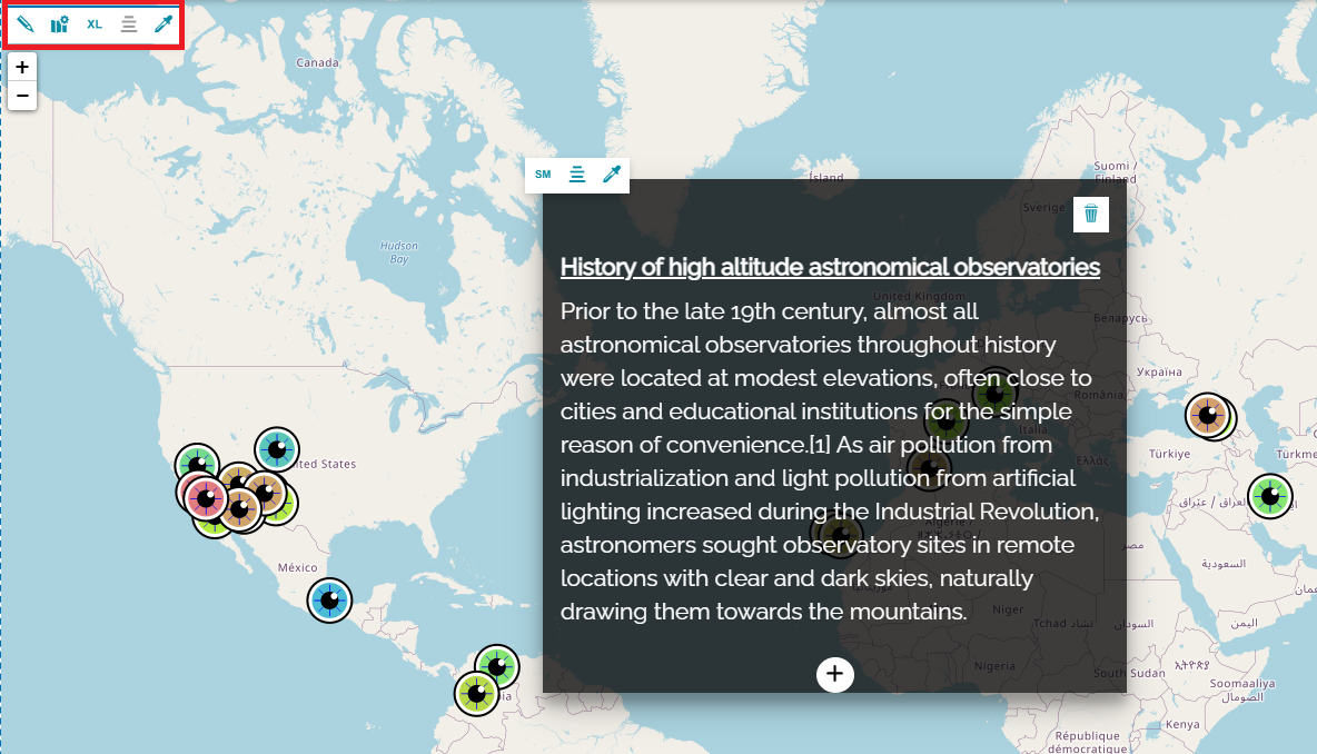 Once a media (image, video or map) is added to the background, an editing toolbar appears in the upper left corner of the section allowing the user to manage the background content.