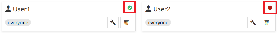 Choose if an user is Enabled or not. Enabled users will have a green status icon under their profile, otherwise disabled users will have a red status and will not be able to log in.