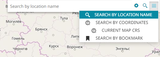 When there are multiple search services defined, by default MapStore performs the search operation on all of them according to the priority configured for each service (see above). Therefore, it is also possible for the user to select the desired search service from the menu to perform the search only on it. Selecting the Search Service Menu button