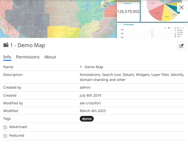 Disable the Advertised option to make the owner of the resource or the MapStore admin the only ones who can see and search that resource in the Home Page or in the Map Catalog tool.
