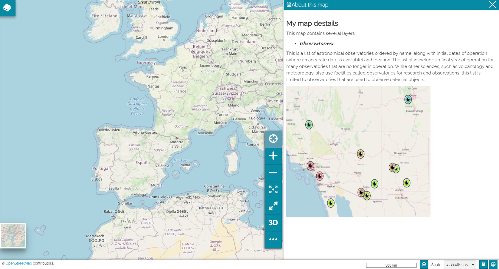 If the Show as modal button is not activated once the user opens the About this map button, the details are displayed on a panel.