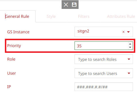 From the Rule panel, by adding the WorkSpace and the Layer, the user can also manage the auth rule with a finest granularity (the Rule Details) by specifying if it should be applied to a specific Style, to layer features matching a predefined Filters and/or to layer Attributes.
