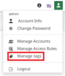 As an admin user, it is possible to manage Tags by selecting Manage Tags option from the
