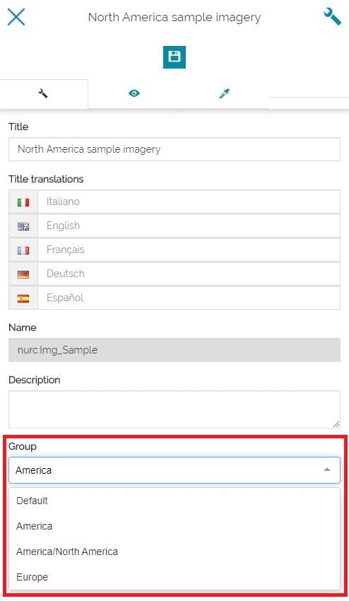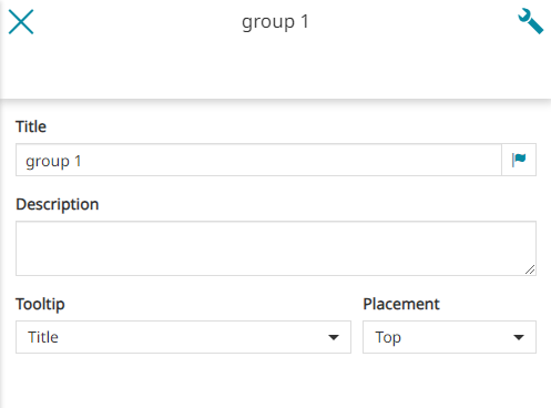 - Configure the Tooltip that appears moving the cursor over the group's item in TOC. In this case the user can decide that the Title, the Description, both or nothing will be displayed. Moreover you can set the Placement of the tooltip, choosing between Top, Right or Bottom. In all circumstances the title is fully visible in TOC the tooltip doesn't appear.
