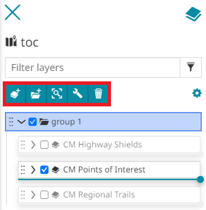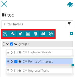 Manage layers and groups and query layers through the toolbar actions