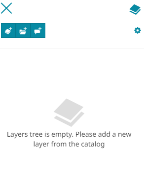 button: the Catalog panel opens and the user can choose the desired layer to add it to the map, through the