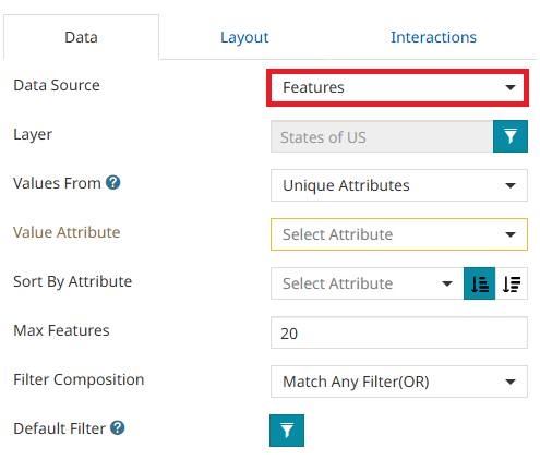 Once a Layer is selected, the following Filter Selector options are available to the user: