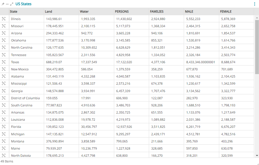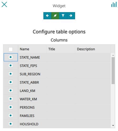 the widget to the map. When a widget is connected to the map, the widget is automatically spatially filtered with the map viewport. When a widget is not linked, it displays the entire dataset of that layer regardless of the map viewport. -
