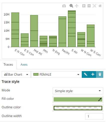 Once the chart type is chosen, it is possible to set up the trace with the following options:
